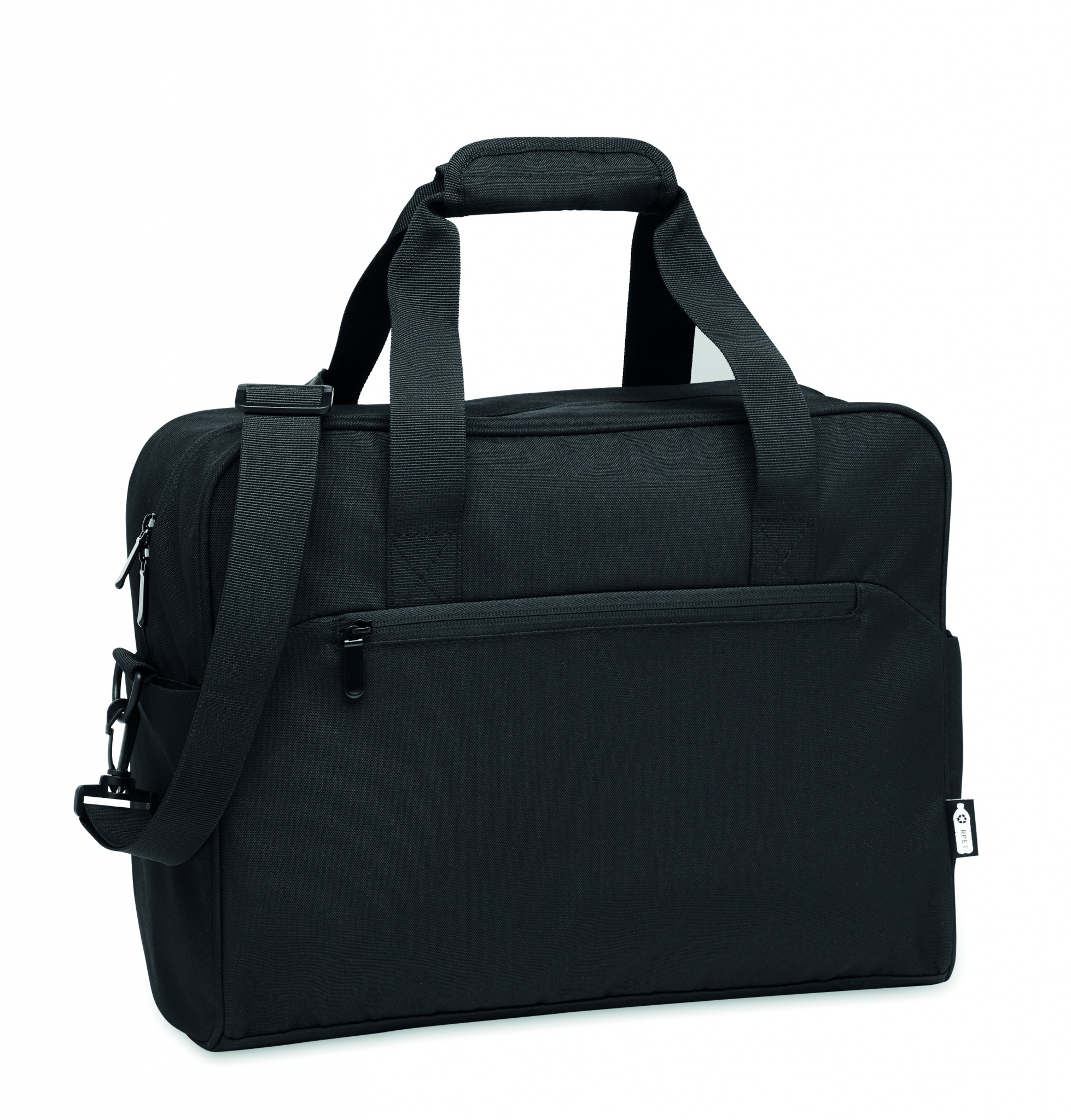 Handgepäck-Reisetasche aus 600D RPET. Große Fronttasche mit Reißverschluss und zwei kleine Seitentaschen. Inkl. 15'''' Laptop-Fach. Gepolsterter, abnehmbarer und verstellbarer Schultergurt. Rückseitige Trolley-Halterung.