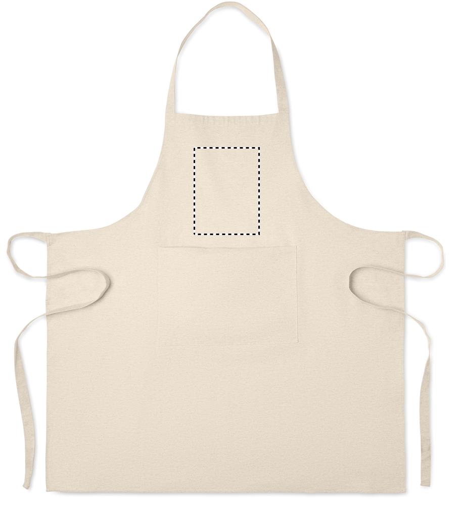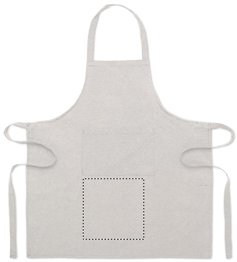 Küchenschürze mit verstellbarem Nackenband und 1 Fronttasche. Recycelte Baumwolle 220 g/m². (80 % recycelte Baumwolle, 20 % Baumwolle)