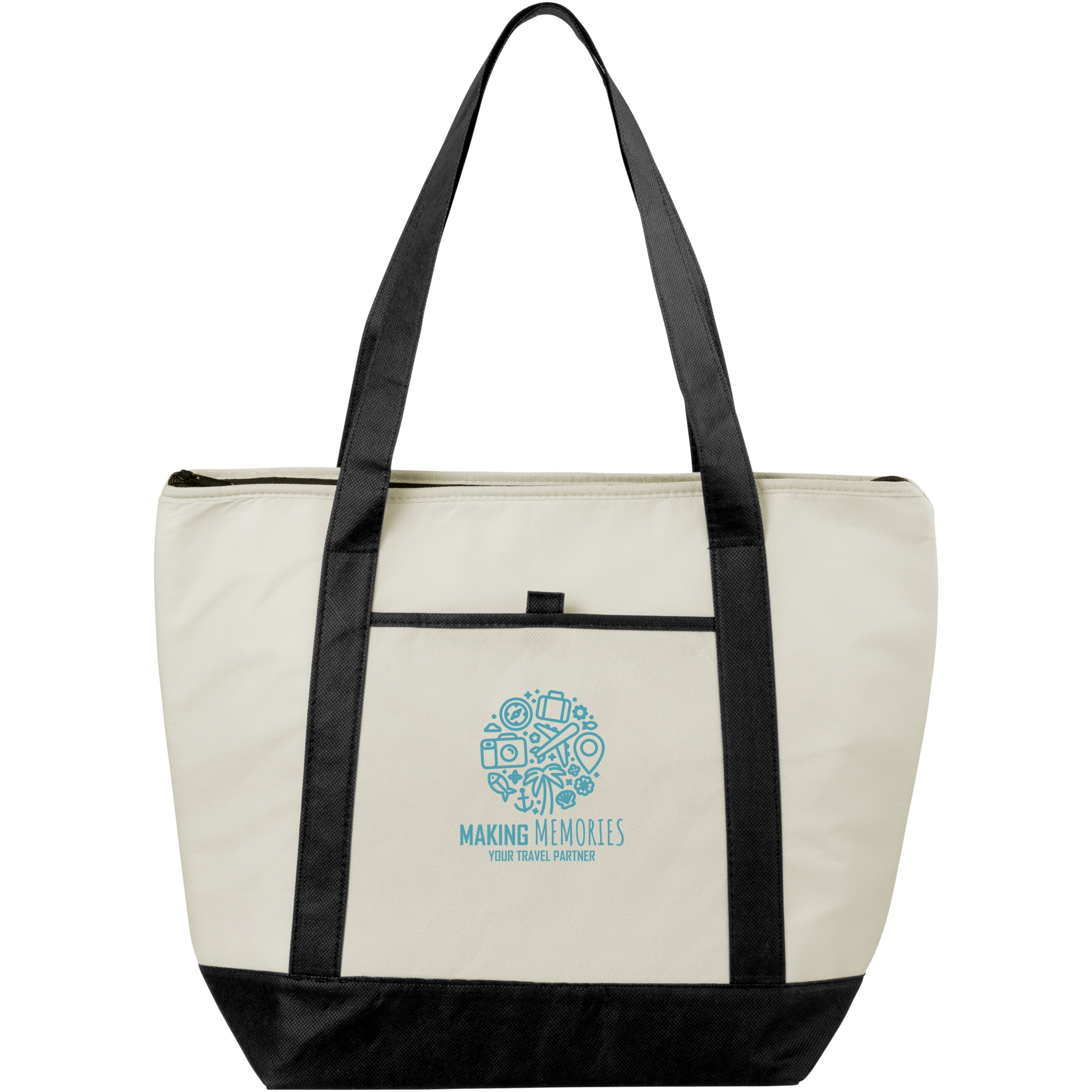 Die schlanke Lighthouse Kühltasche sieht aus wie eine gewöhnliche Tasche, aber der Schein kann trügen. Stellen Sie eine kalte Dose in das große Hauptfach, schließen Sie den Reißverschluss, und das Produkt bleibt gekühlt. Dank der 28 cm langen Griffe lässt sich die Tasche bequem über der Schulter tragen. Die Kühltasche hat eine offene Vordertasche und eine Stiftschlaufe (Zubehör nicht enthalten). Die Kühltasche besteht aus 80 g/m² Non Woven PP-Kunststoff, einem vielseitigen und leichten Material.