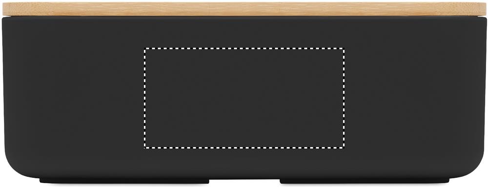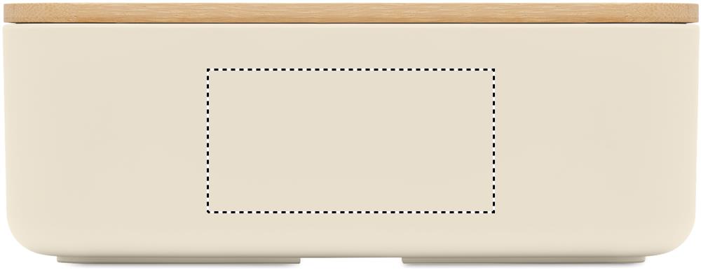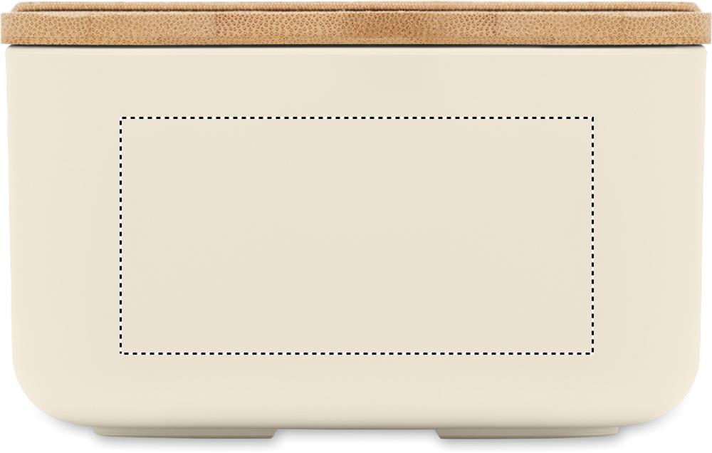 Lunchbox aus 100% PLA-Mais. Deckel aus Bambus und RPET-Elastikbandverschluss. Füllmenge: 1000 ml.