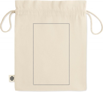 Beutel mit Kordelzug in mittlerer Größe. Organic Cotton. 105 g/m². Maße: 25 x 32 cm.