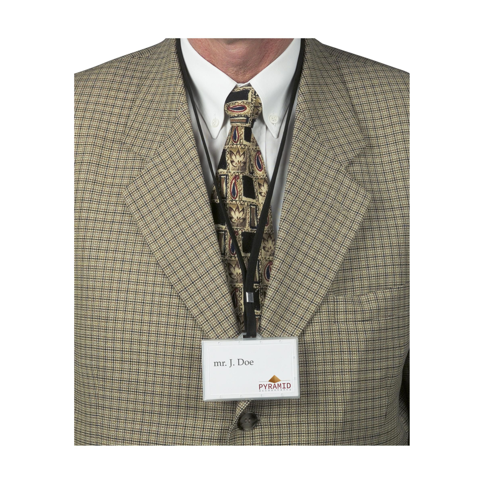 Transparenter Namenskartenhalter mit Umhängeband (90 cm). Inkl. Blanko-Karteneinleger.