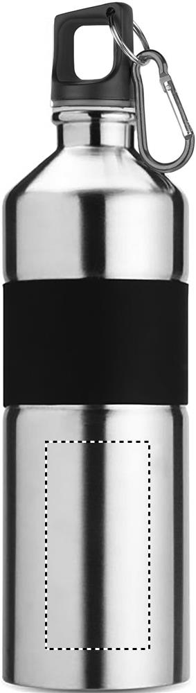Zweifarbige, einwandige Trinkflasche aus Edelstahl mit gummiertem Griffteil und Karabiner. Füllmenge: 750 ml. Der Karabiner ist NICHT als Sicherung beim Klettern geeignet. Auslaufsicher.