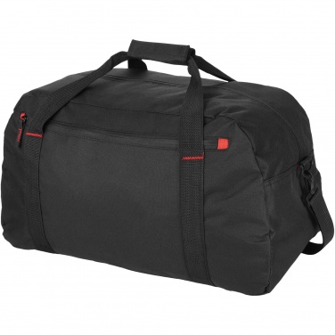 Große Reisetasche mit farbig abgesetzten Ziernähten und Reißverschlusstasche vorne und verstellbarem Schulterriemen.