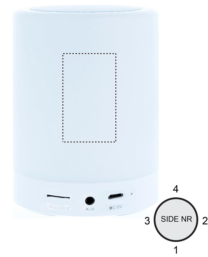 Wireless Lautsprecher mit wechselndem, farbigem Licht 1,6W. Farbe und Helligkeit auch per Touchfunktion einstellbar. Micro-SD-Karten Slot. Rufannahme-Funktion. Wieder aufladbare Li-Ion 2000 mAh. Ausgangsleistung: 3W.