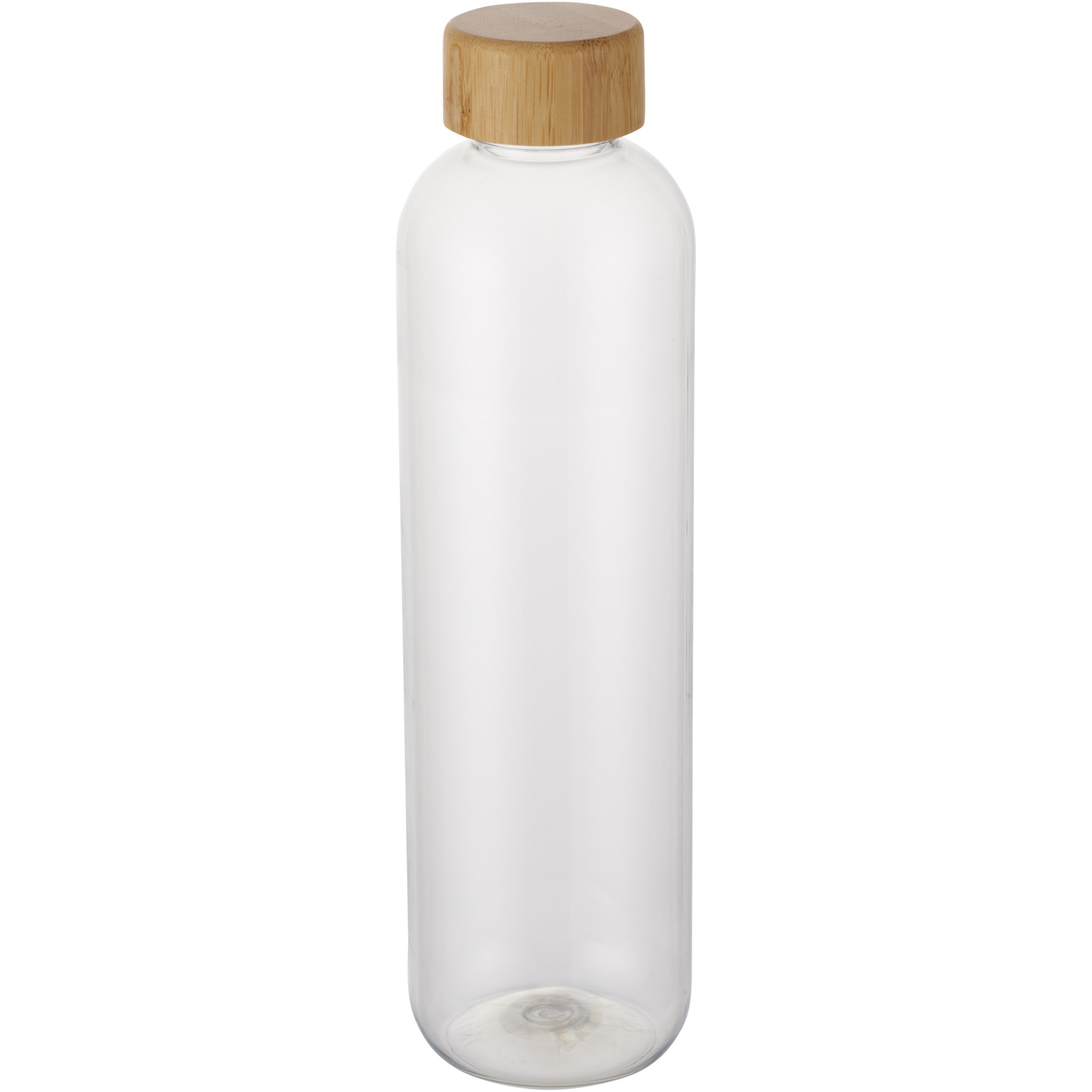 Wiederverwendbare Wasserflasche aus recyceltem Kunststoff mit einem eleganten Bambusdeckel. Die einwandige Flasche ist BPA-frei und wurde nach dem deutschen Lebensmittelrecht (LFGB) geprüft und zugelassen. Auf Phthalate geprüft und zugelassen gemäß den REACH-Vorschriften. Das Bambusholz stammt aus nachhaltigen, umweltfreundlichen und sozial verantwortlichen Quellen. Das Fassungsvermögen beträgt 950 ml. Handwäsche empfohlen. Verpackt in einer Geschenkbox aus Recyclingkarton.