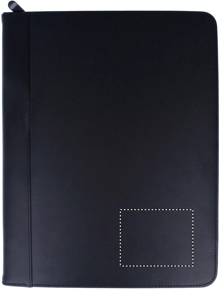 A4 conference folder with bonded leather cover. Zipped. 25 plain sheets notepad. 4 inner compartments. Pen holder.