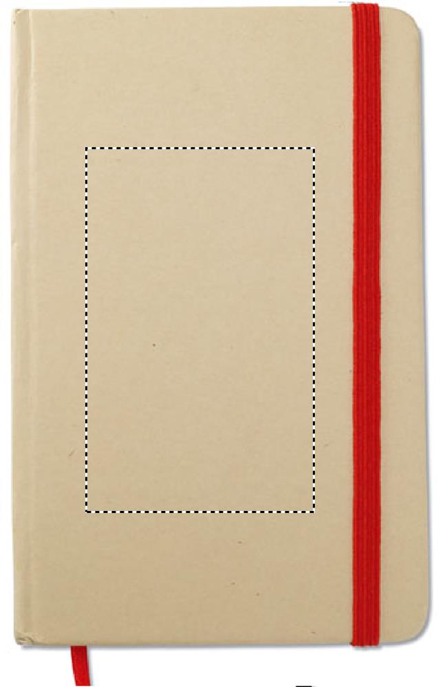 A6 recycled paper hard cover notebook. Casebound. 192 plain pages (96 sheets). Elastic closure strap and ribbon bookmark.