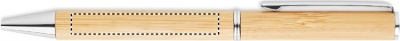 Twist ball pen in bamboo with metal fitting. Blue ink. Bamboo is a natural product, there may be slight variations in colour and size per item, which can affect the final decoration outcome.