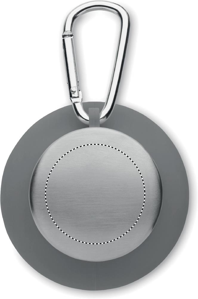 Collapsible silicone bottle with stainless steel lid and aluminium carabiner. The carabiner is not for climbing (non-professional use). Capacity: 500 ml.