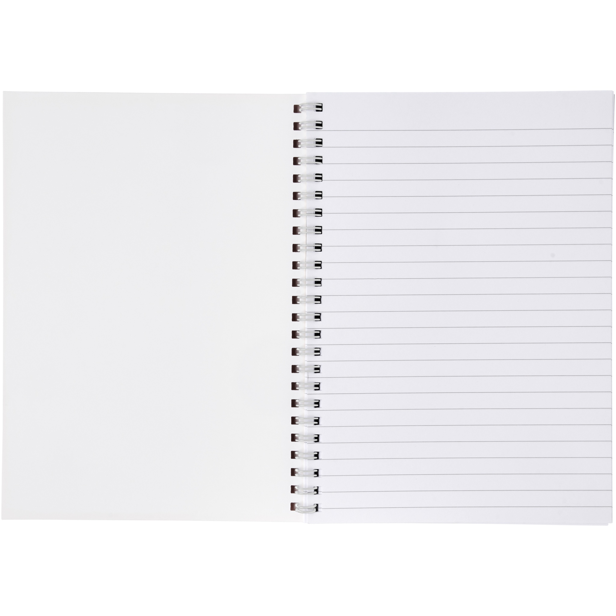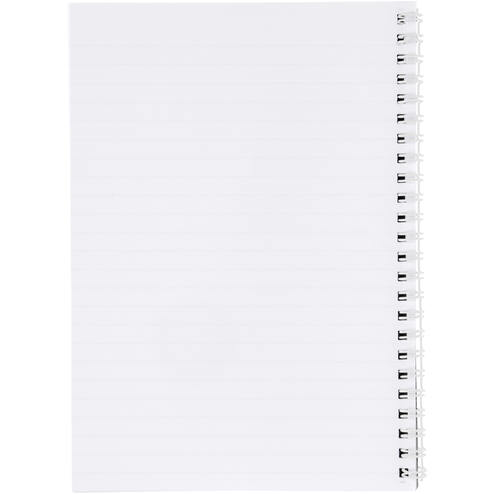 Desk-Mate® A5 spiral notebook. Includes 50 sheets blank paper (80 g/m2) and front cover (450 g/m2). The cover is tear- and waterproof. Black or white colour wire. You can customise the pages of this versatile notebook with any design - so whether you want lined paper, squares or dots - anything is possible!