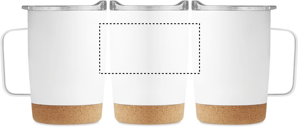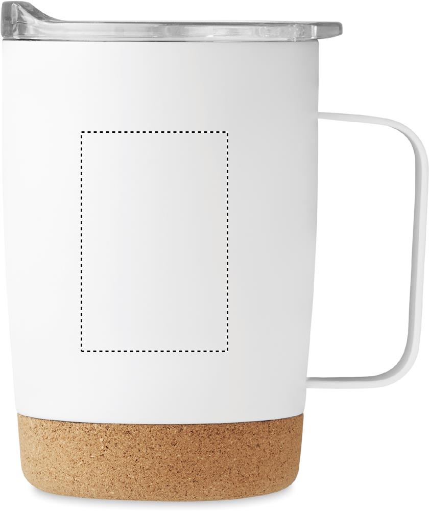 Double wall stainless steel mug with cork base and sliding sip hole cover. Capacity: 300 ml. Cork is 100% natural material. Due to its structural nature and surface porosity the final print result per item may have deviations.