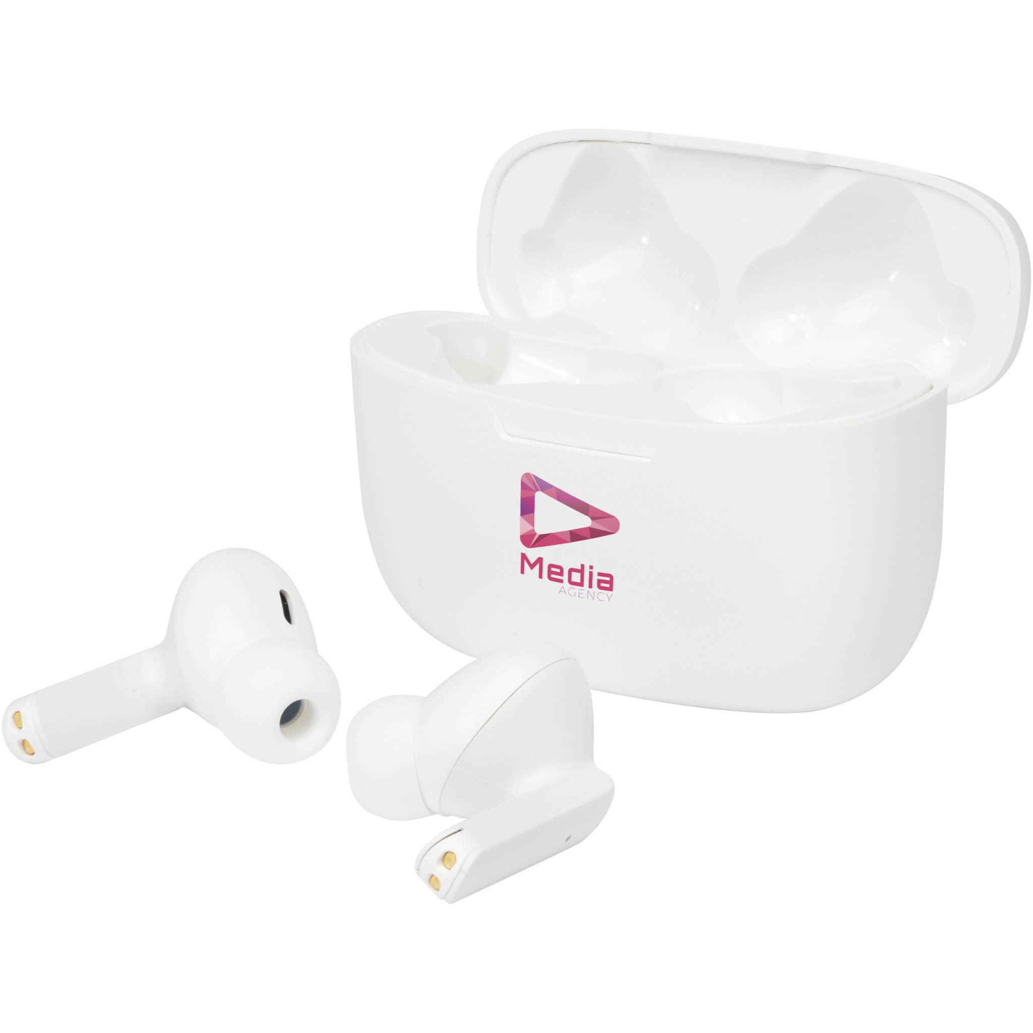 The famous Essos earbuds has got a refresh with this new 2.0 version! A completely new design with the same quality focus in mind. The earbuds feature Bluetooth® 5.3, auto-pairing, and auto power-on. Integrated with transparency function which will enhance the sound surrounding you from outside by built-in programming, enabling you to be aware of your surroundings when wearing earbuds. It's even possible to communicate with people without removing the earbuds. Once the 300 mAh battery of the case is charged, it can charge the earbuds 3 times from 0-100%. With over 3 hours of playback time at max volume on a single charge these earbuds are a must for any traveler. The earbuds supports quick charging. Only 10 minutes of charging provides over 60 minutes of playback time at max volume! The ergonomic design of the earbuds keep them securely in place when on-the-go. Built-in music controls and dual microphones for hands-free operation. The case can be charged in under 1.5 hours. Supports Siri and Google Assistant. Bluetooth® working range is up 10 meters. Delivered in a premium gift box made of sustainable material.