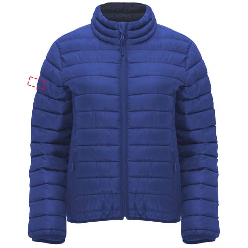 Women's quilted jacket with feather touch padding. Inverted zippers with matching chin protector and puller. Two front pockets with zippers. Matching elastic edging in collar, cuffs and hem. Contrasting inner lining. Includes stow carry bag. Lightweight and foldable garment. Fitted cut. Removable label. Water resistant. Wind-proof. The model is 179 cm and is wearing size S.