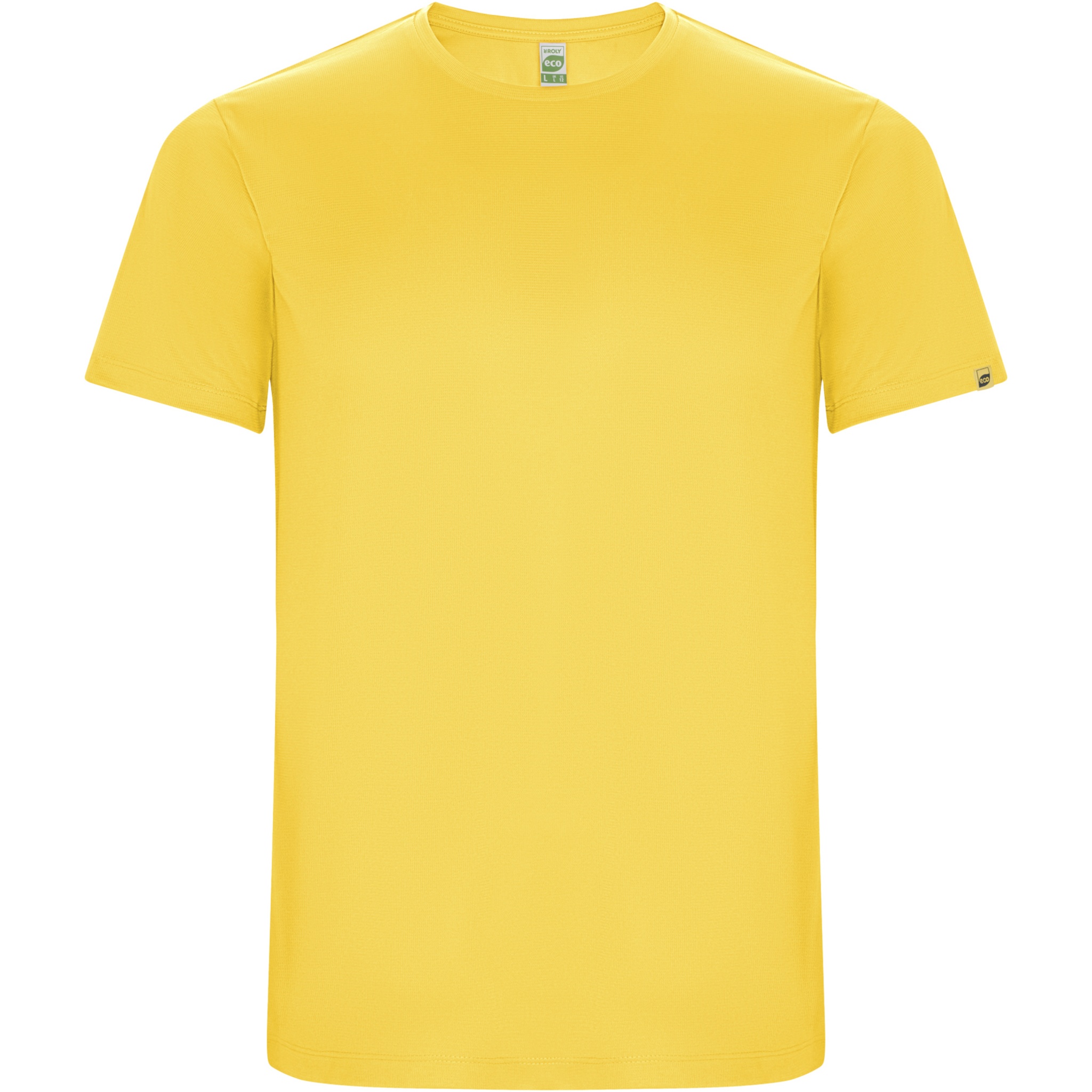 Technical short-sleeve t-shirt in recycled CONTROL-DRY polyester. Crew neck with matching covered seams. ECO logo label on sleeve. Packing in recycled material. Removable ECO label. Packing in recycled material. Technical fabric. The model is 115 cm and is wearing size 5/6.