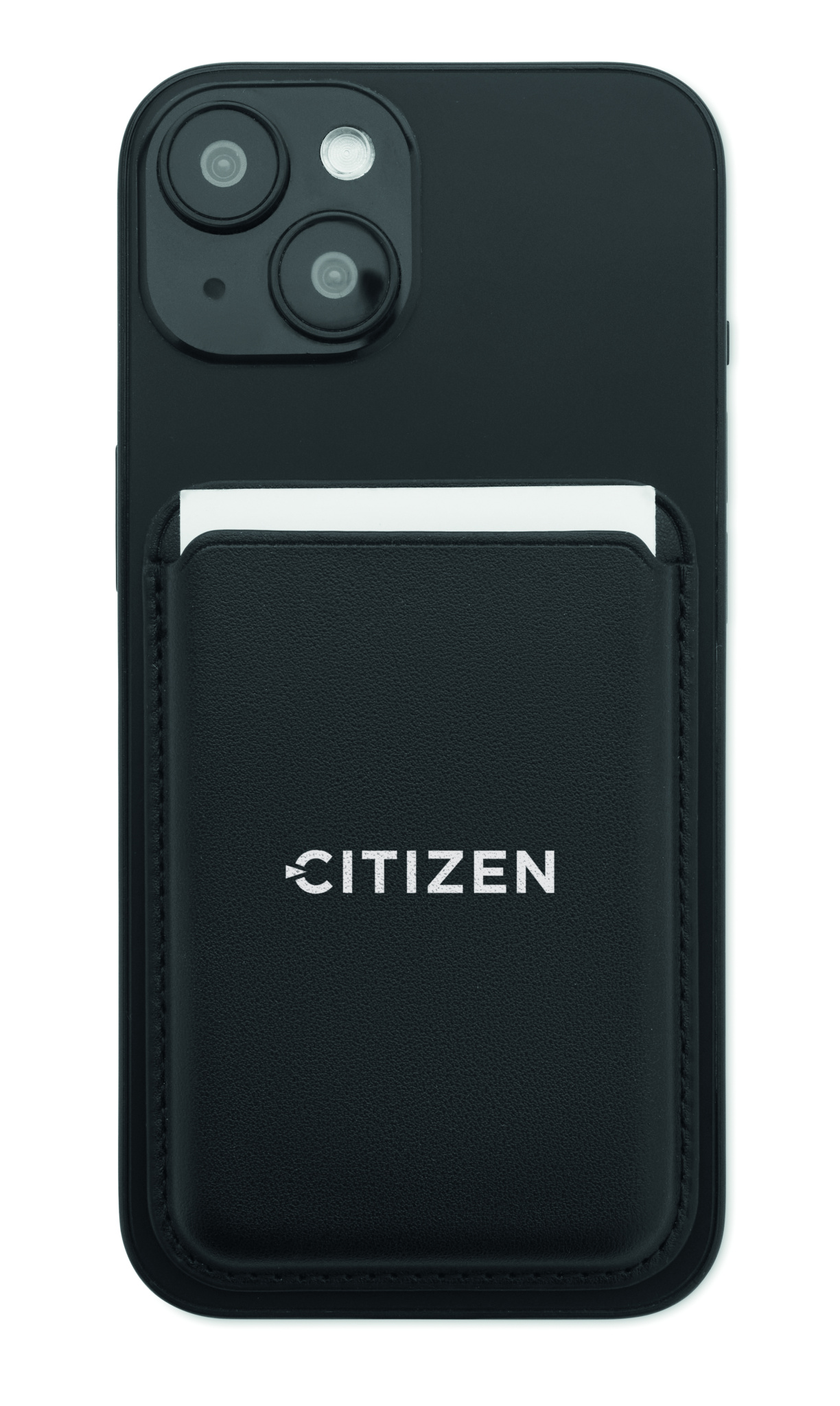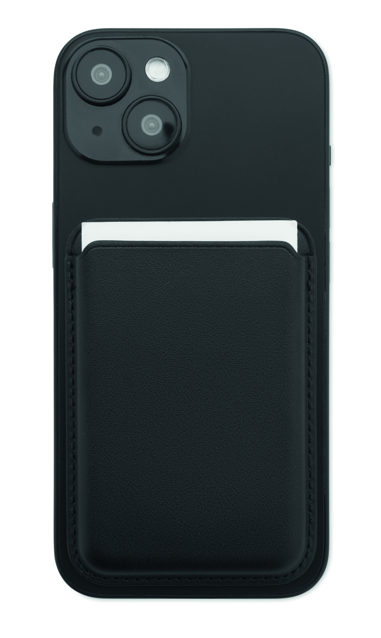 Magnetic PU leather credit card holder (for 3 cards). It includes an additional metal ring.