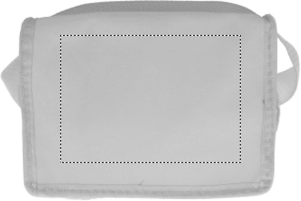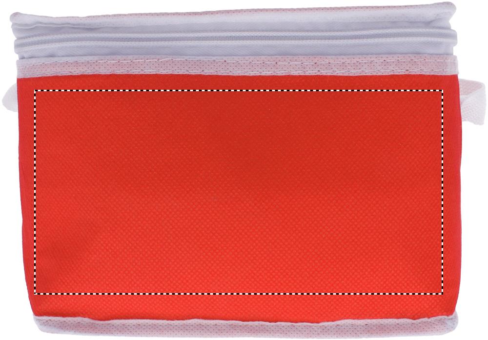 Cooler bag for 6 cans. Outside in nonwoven with white trimmings. 80 gr/m². Isolation material: foam laminated with aluminium foil. Capacity 3L.