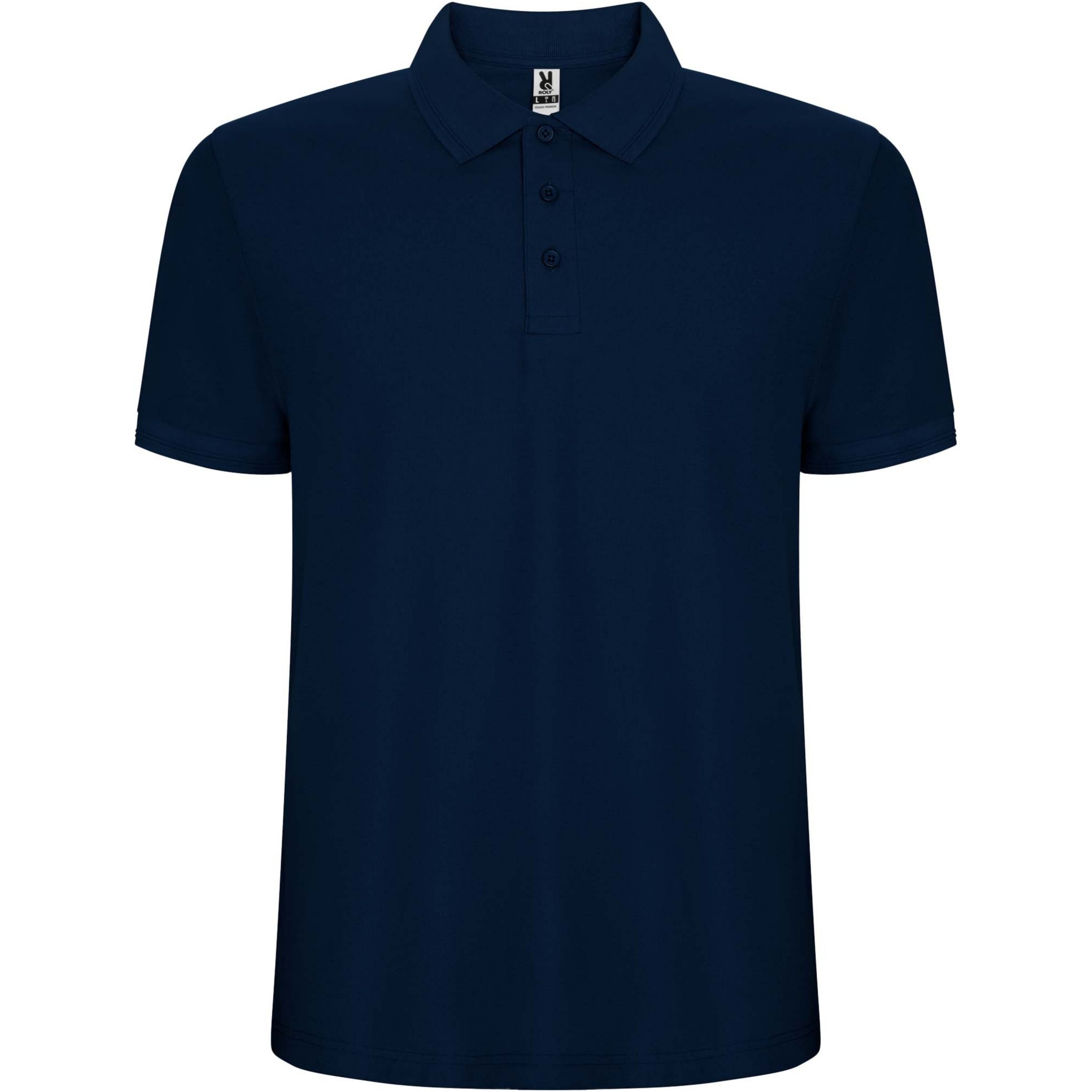 Short-sleeve polo shirt. Collar and sleeves edging in 1x1 ribbed fabric with detail. 3-button placket. Reinforced covered seams in collar. Side slits and optional pocket. Removable label. Anti-pilling treatment.
