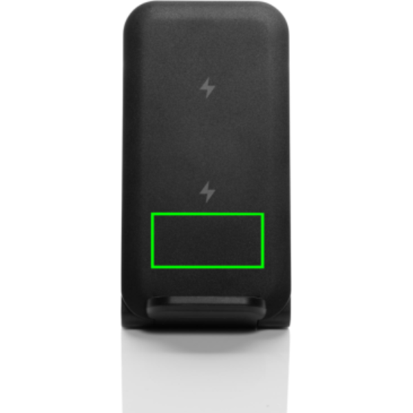 3-in-1 wireless charger stand made with RCS recycled ABS. Total recycled content: 51% based on total item weight. RCS certification ensures a completely certified supply chain of the recycled materials. The wireless charger comes equipped with a 15W wireless charger and an additional 5W wireless charger suitable for earbuds cases or other small wireless chargeable devices and a 2.5W wireless charger for smartwatches ( Apple watches only). Foldable design so easy to take with you. Including RCS certified 120 cm recycled TPE cable. Packed in FSC® mix kraft packaging. Item and accessories 100% PVC free. Input: 9V/3A for optimal use. Output: Phone: 9V/1.1A; 9V/1.67 A/(15W), Earbuds: 5V/1A (5W), Watch: 5V/0.5A.