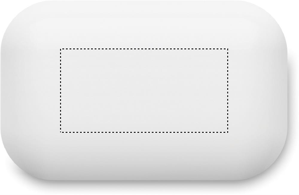 Recycled ABS True Wireless Stereo (TWS) 5.3 wireless stereo earbuds with microphone and 25 mAh battery. Playing time approx. 3 hours. It has a charge level LCD display. Auto-pairing. Including a Type C charging cable and a 250 mAh charging station.