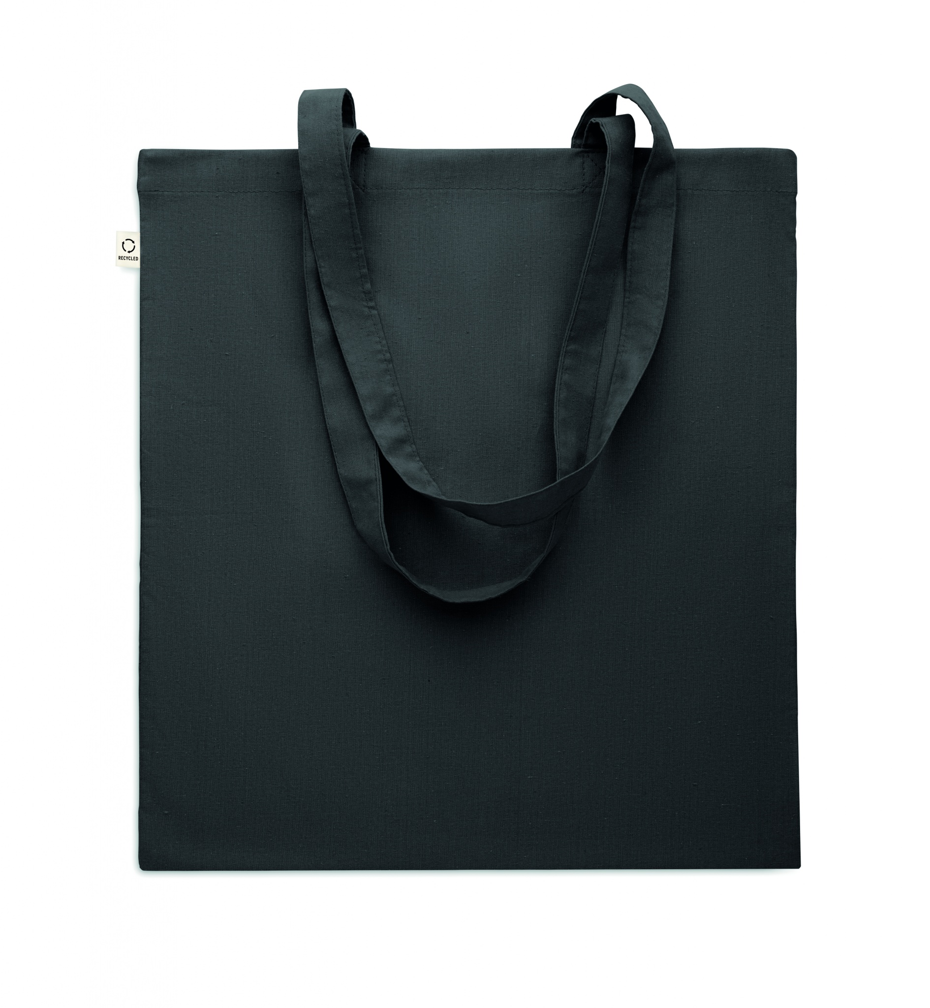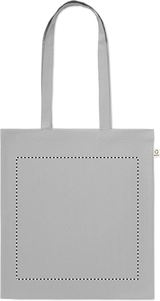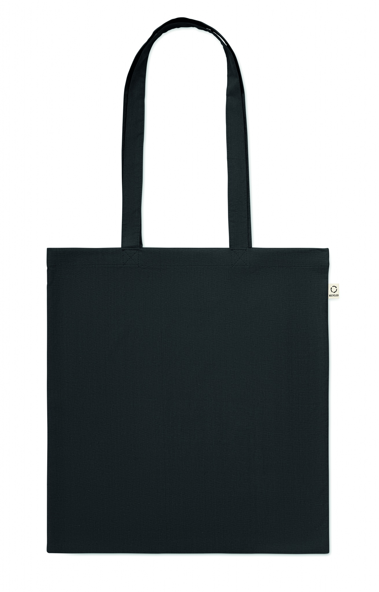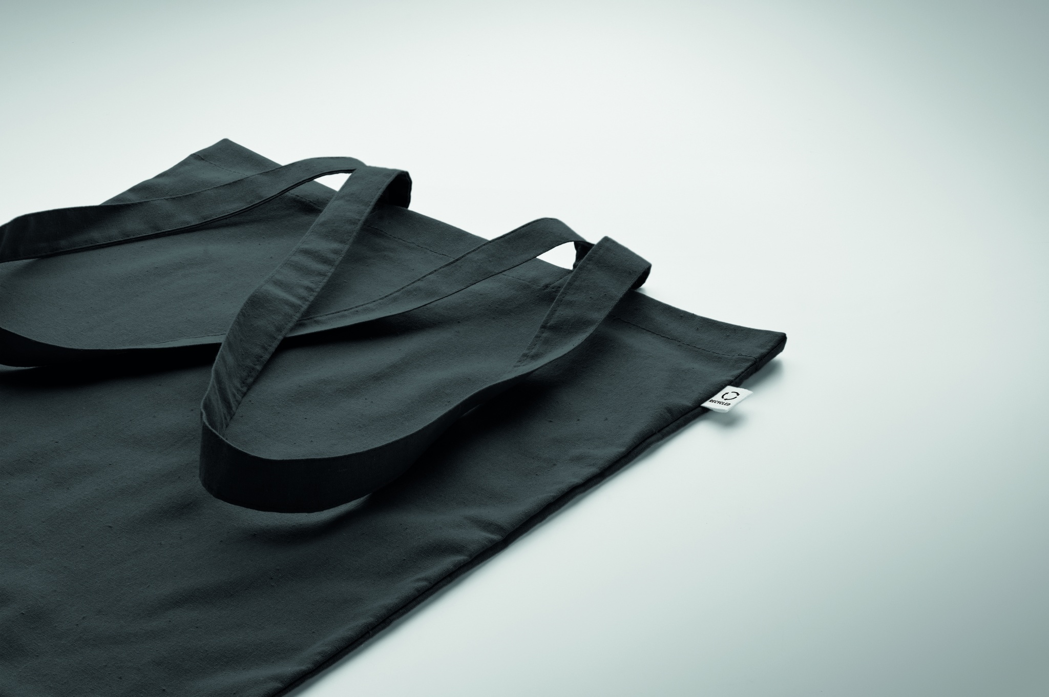 Recycled pre-consumer cotton shopping bag (70% recycled cotton and 30% RPET) with long handles. 140 gr/m².