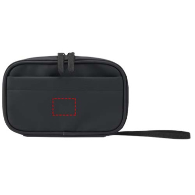 Made from GRS certified recycled PU leather with a matching RPET lining, this tech pouch is designed for travellers, remote workers, and tech enthusiasts. Compact and easy to carry in a backpack or cabin bag, it has a zipped main compartment with practical organisation features including an elastic pen loop, two mesh pockets for earbuds and small accessories, a reinforced divider, and multiple elastic loops to securely hold cables, USB drives, and chargers. The exterior includes a front pocket with hook-and-loop closure for quick access, along with a webbing handle for convenience. Finished with a water-resistant coating, it keeps your essentials protected wherever you go. Volume capacity: 1 litre.