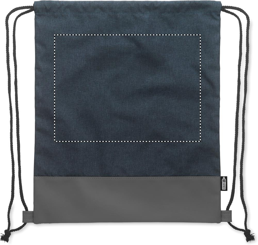 Drawstring bag in 2 tone 300D RPET polyester with soft PU detail and polycotton cord.