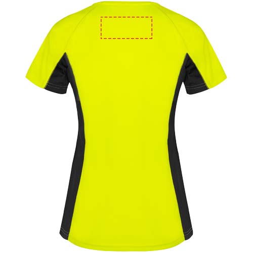 Technical and breathable fabric. A combination of two polyester fabrics: Main fabric in birds eye, side panels and inner sleeve in microperforated fabric. Crew neck with inner reinforced covered seams. Removable label.