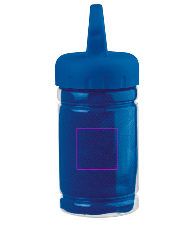 Great companion for sports, cooling towel packed in a plastic bottle with carabiner. We print your logo on the bottle (only 1C feasible).
