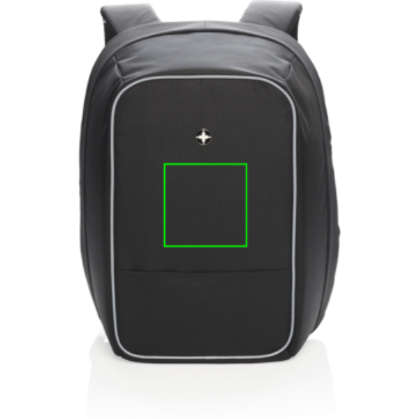 This Swiss Peak anti-theft 15.6” laptop backpack is a stylish option for your every day commute. The hidden zipper closures and secret pockets will keep all your belongings safe. Connect your powerbank easily to the integrated USB charging port and charge your phone or tablet on the go. Stay visible at night thanks to the reflective safety strips. With luggage strap. With AWARE™ tracer that validates the genuine use of recycled materials. Each bag has reused 24.4 0.5L PET bottles. 2% of proceeds of each AWARE™ product sold will be donated to Water.org. PVC free. Registered design®