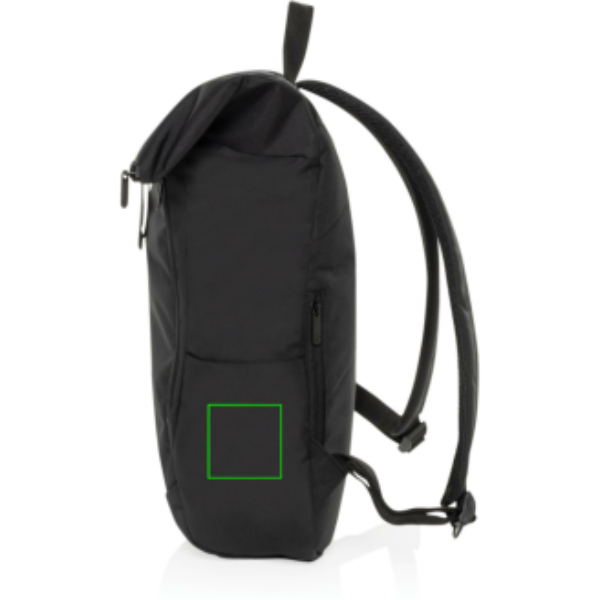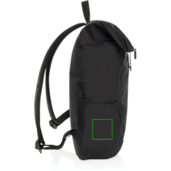 The Swiss Peak Aware™ RPET Leonard 15.6 Inch Laptop Backpack is a perfect blend of style and functionality. Crafted from 100% rPET, this trendy backpack features adjustable shoulder straps and a unique flap design that adds 14cm of extra height when needed. The main compartment opens in an L-shape for easy access, with additional security provided by webbing and buckle closures. Inside, it comfortably fits a 15.6-inch laptop secured by a Velcro closure, along with a convenient internal zipper pocket. The bag also includes a front zipper compartment, a drink holder pocket, and a webbing handle on top, making it ideal for business and daily use. Made with recycled polyester embedded with the AWARE™ tracer. 2% of proceeds of each product sold with AWARE™ will be donated to Water.org. PVC free.