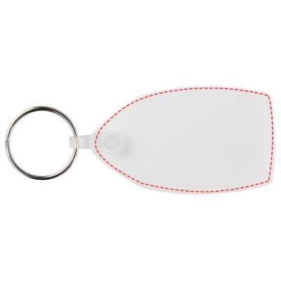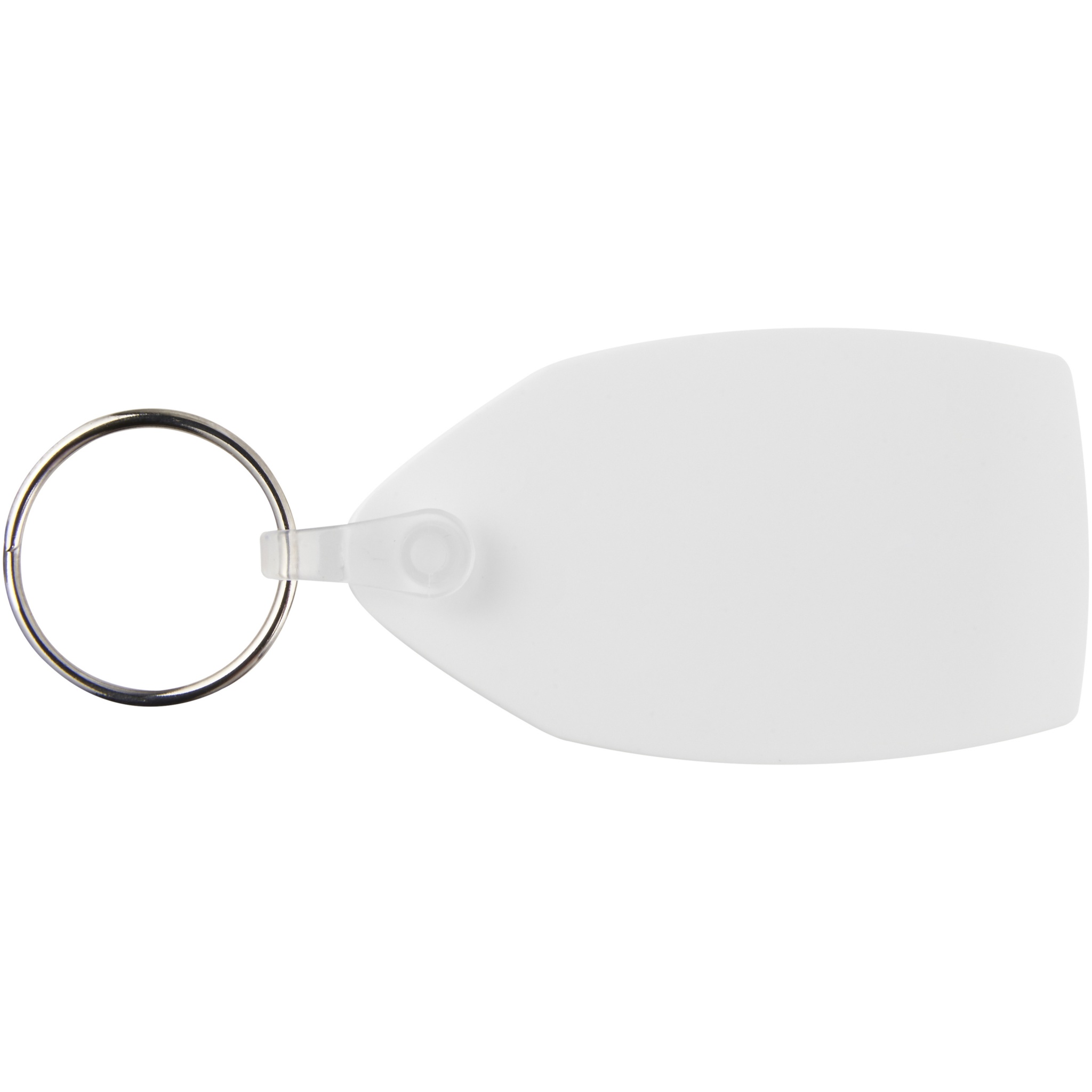 White rectangular-shaped keychain with metal split keyring. The metal looped ring offers a flat profile which is ideal for mailings.