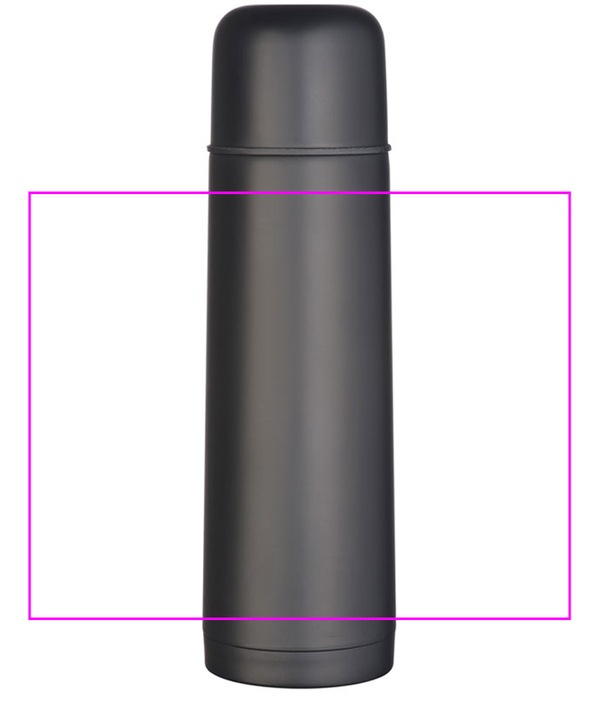 Noble! Your customers will love this fancy stainless steel thermo flask with 0.5 l capacity and fast closure. Its unique design by the black lacquering makes it the perfect logo item. We will engrave your logo on the flask. Single-packed in poly bag.