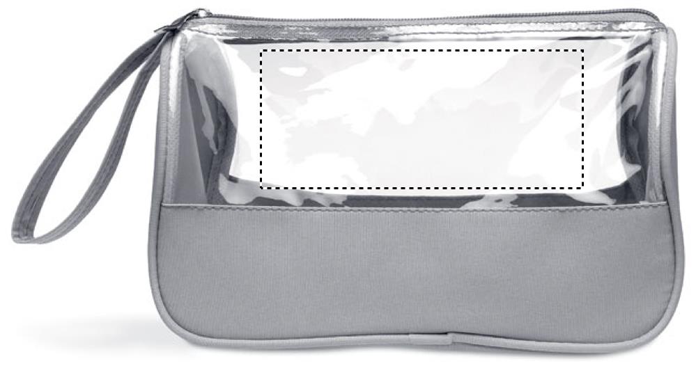 Cosmetic bag in microfiber and PVC 6 Phthalate free, with wrist handle.