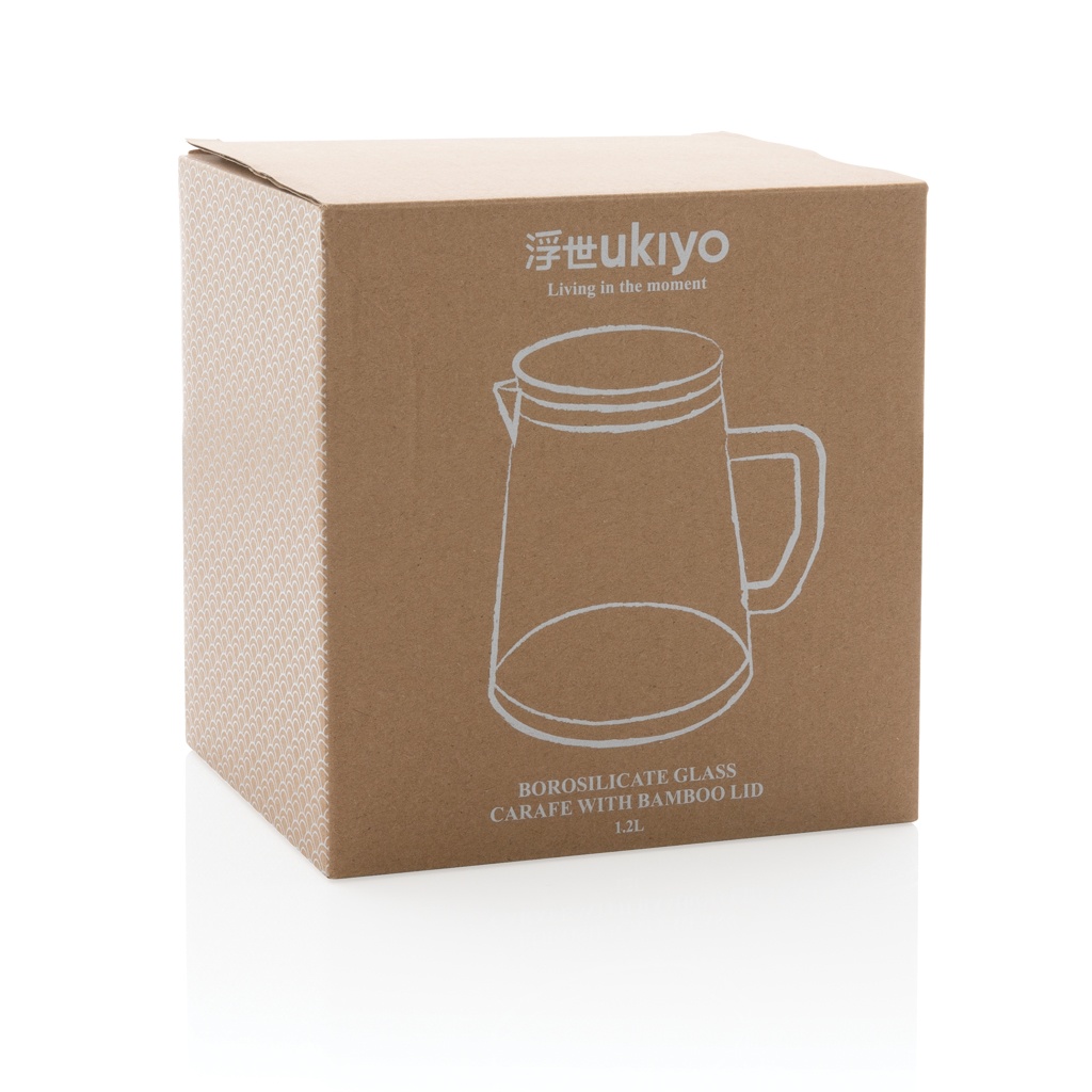 Logo trade promotional items image of: Ukiyo borosilicate glass carafe with bamboo lid 1.2L