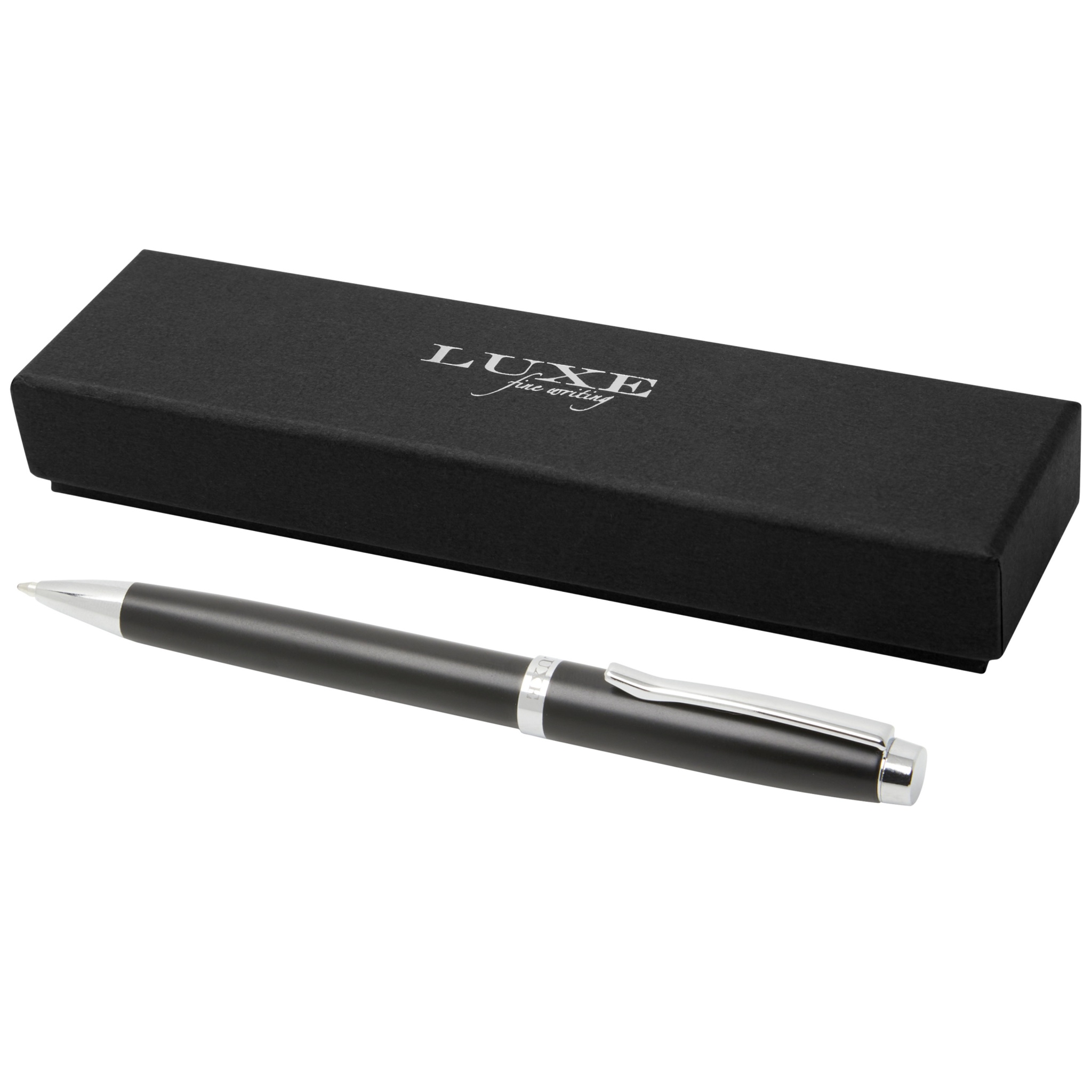 Sleek ballpoint pen with exclusive design available in three executive colours. Pre-loaded with a black ink refill and packed in a LUXE gift box.