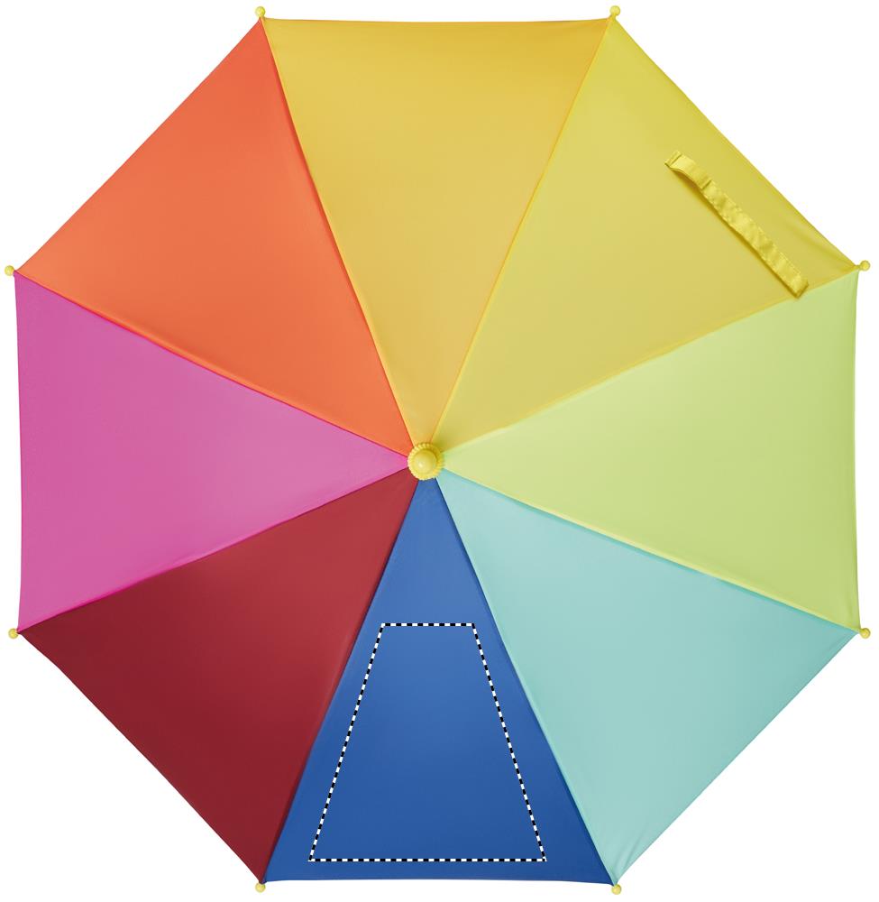 18-tolline laste vihmavari 190T vikerkaaremustriga pongee. Sellel on 8 paneeli. Käsitsi avamine ja sulgemine. Klaaskiust ribid ja raam. Plastikust käepide ja otsad. Kaarjas käepide.