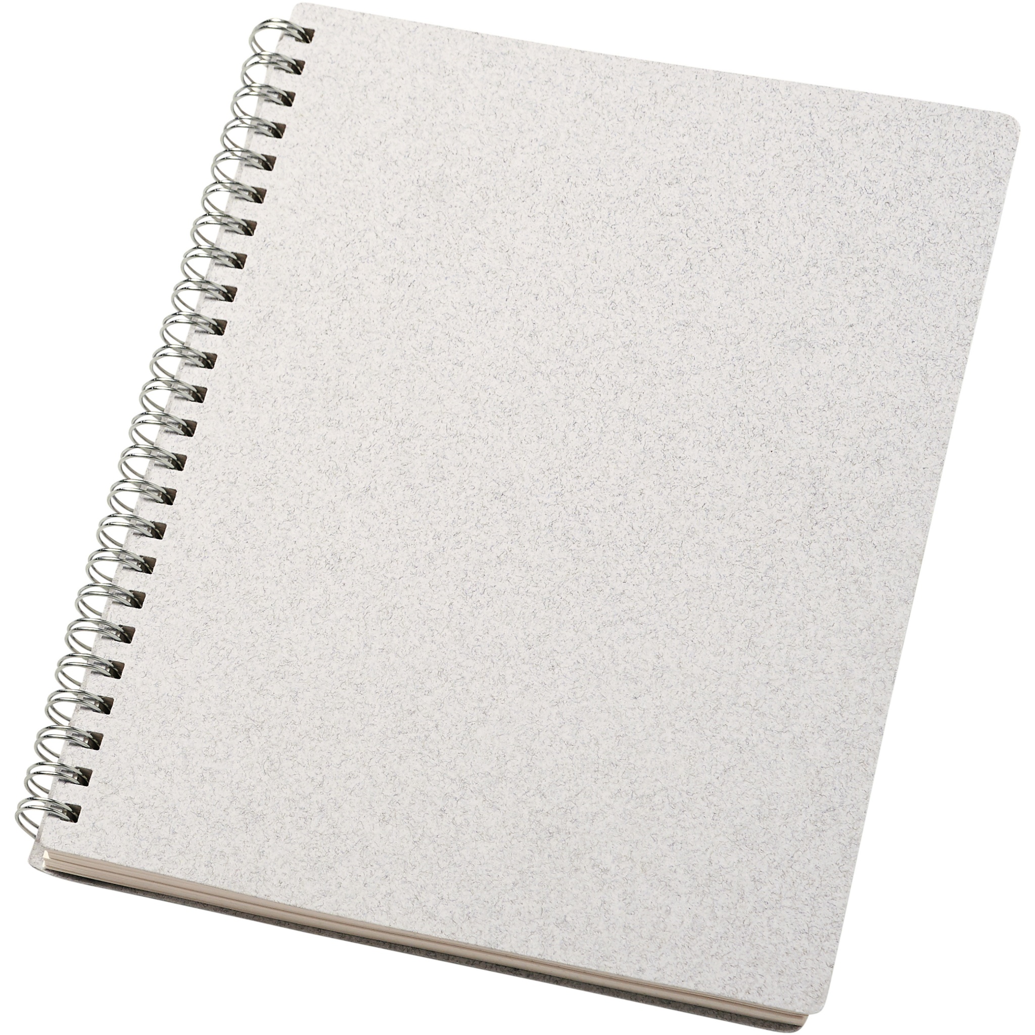 A5-suuruses traat-o-märkmik, mis on valmistatud vastutustundlikult hangitud kaanematerjalidest, mis sisaldavad puuvillajäätmeid (15%) ja tarbimisjärgseid taaskasutatud jäätmeid (40%). Sisaldab 80 lehte, 80 g/m2 100% vastutustundliku päritoluga taaskasutatud paberit punktiirrestiga. Punktiline paigutus ühendab jooneliste, tavaliste ja ruuduliste lehtede eelised, pakkudes samal ajal struktuuri ja ergutades loovust, muutes selle sülearvuti sobivaks paljudele kasutajatele. Tänu spiraalile saab sülearvuti mugavuse huvides lamedalt lamada ja seda saab hõlpsalt kokku panna. Valmistatud Itaalias.