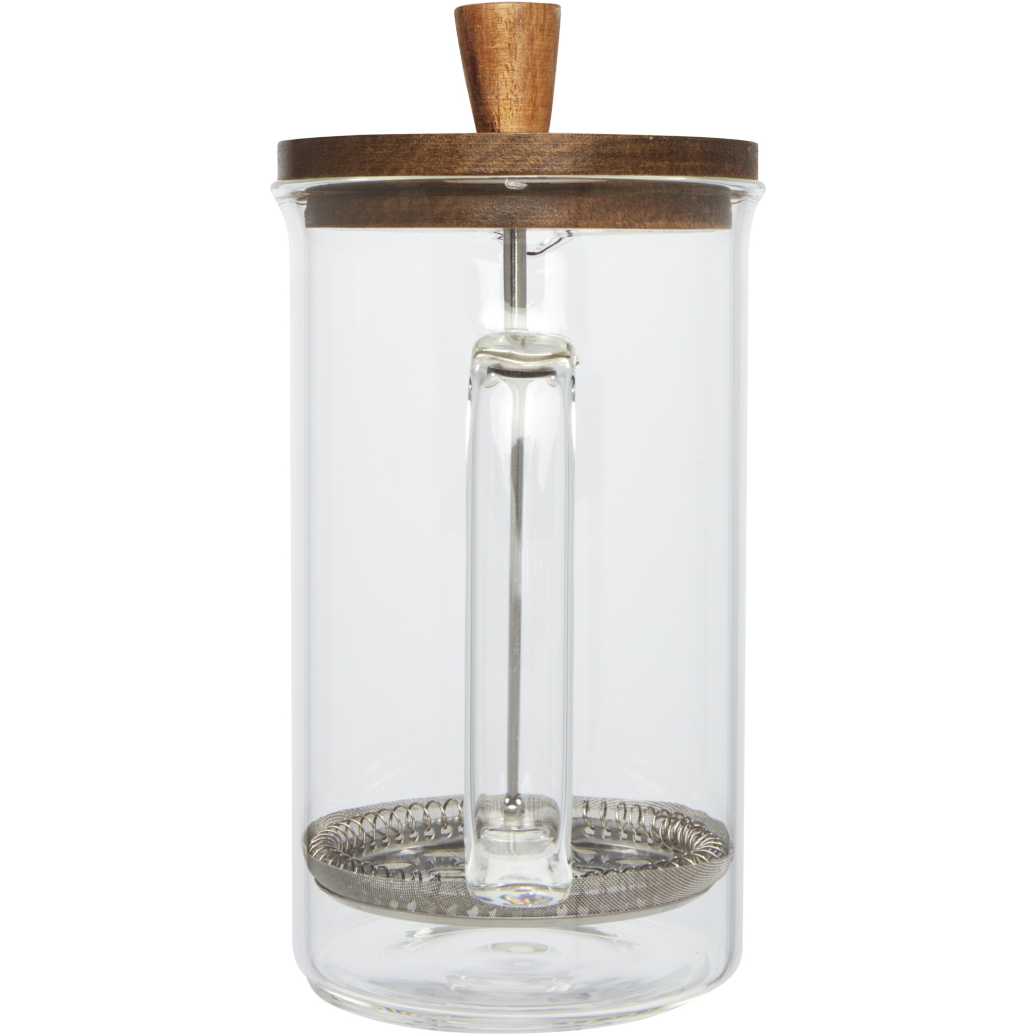 Elegantse disaini ja akaatsiapuidust kaanega prantsuse press, mis on pärit jätkusuutlikest, keskkonna- ja sotsiaalselt vastutustundlikest allikatest. Maht on 600 ml. Valmistage oma värskelt keedetud 3 tassi kohvi vaid mõne minutiga. Lisa klaaskannu jämedalt jahvatatud kohv. Täida kuuma veega ja lase oma maitse järgi tõmmata. Vajutage kolbi aeglaselt alla. Teie kohv on valmis! Lisaks saate valmistada teed, kuuma šokolaadi, piima, puuviljateed ja limonaadi. Borosilikaatklaas muudab teie prantsuse ajakirjanduse mitte ainult tõeliseks pilgupüüdjaks teie köögis, vaid ka väga oluliseks teie seikluste ja väljasõitude jaoks.