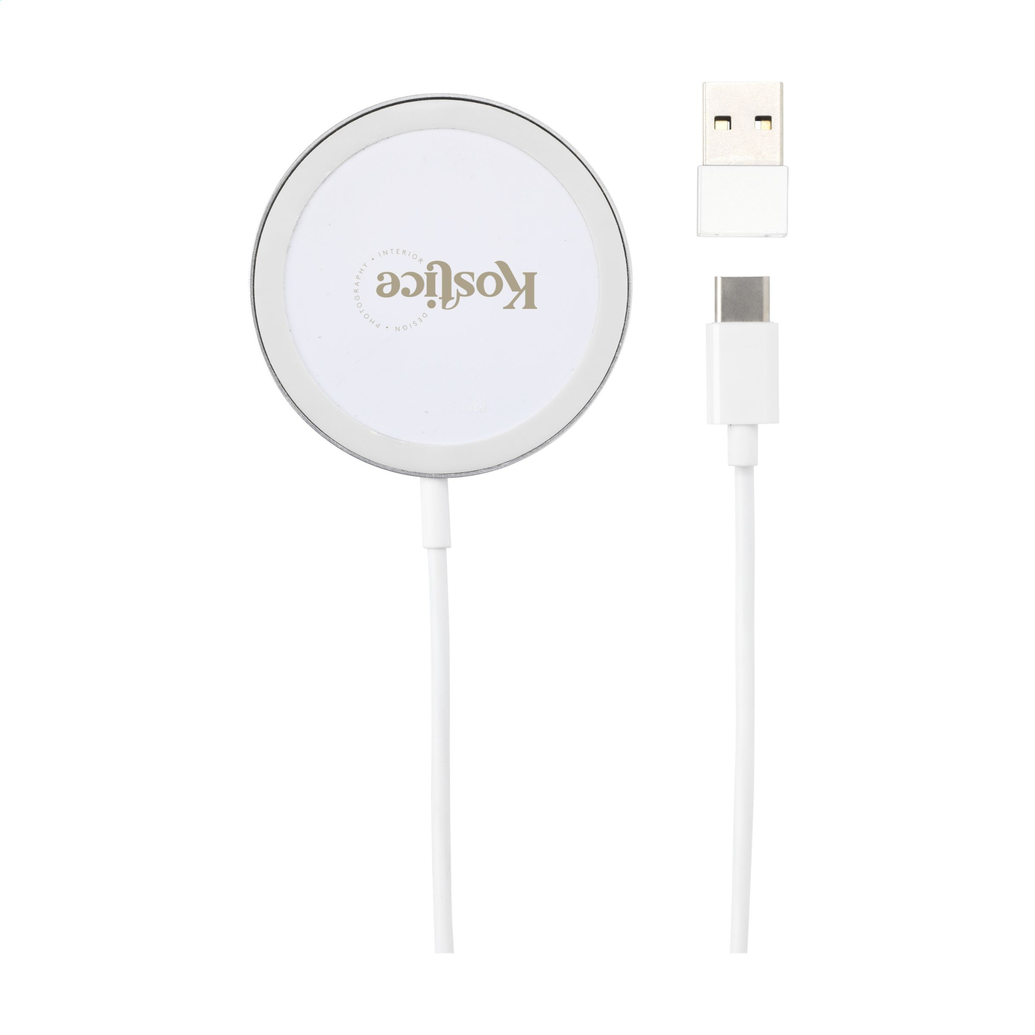 Magnetiline 10 W laadija, mille korpus on valmistatud ümbertöödeldud ABS-st. Selle laadijaga saad laadida oma nutitelefoni juhtmevabalt ning tänu magnetiseeritud alusele püsib telefon sellega ühenduses ka siis, kui telefoni kasutad. See laadija on ideaalne, kui soovite oma mobiilseadet laadida samal ajal, kui helistate või vaatate videot. Selle laadija integreeritud magnetid (11 kõrgekvaliteedilist kuumakindlat N52H) on ideaalselt joondatud ja tagavad alati, et teie telefon on optimaalseks laadimiseks õiges asendis. Kaasas on ka täiendav magnetiline metallrõngas, mis toetab mittemagnetiliste juhtmevabade laetavate nutitelefonide laadimist. See toode ühildub iPhone 12 ja uuemate versioonidega. Väljund: DC 9V/1.1A (15W) kiireks laadimiseks. Kaasas kaabel (USB-A & Type-C) ja kasutusjuhend. Nii toode kui ka selle tarvikud on PVC-vabad. Iga toode tarnitakse eraldi pruunis pappkarbis.