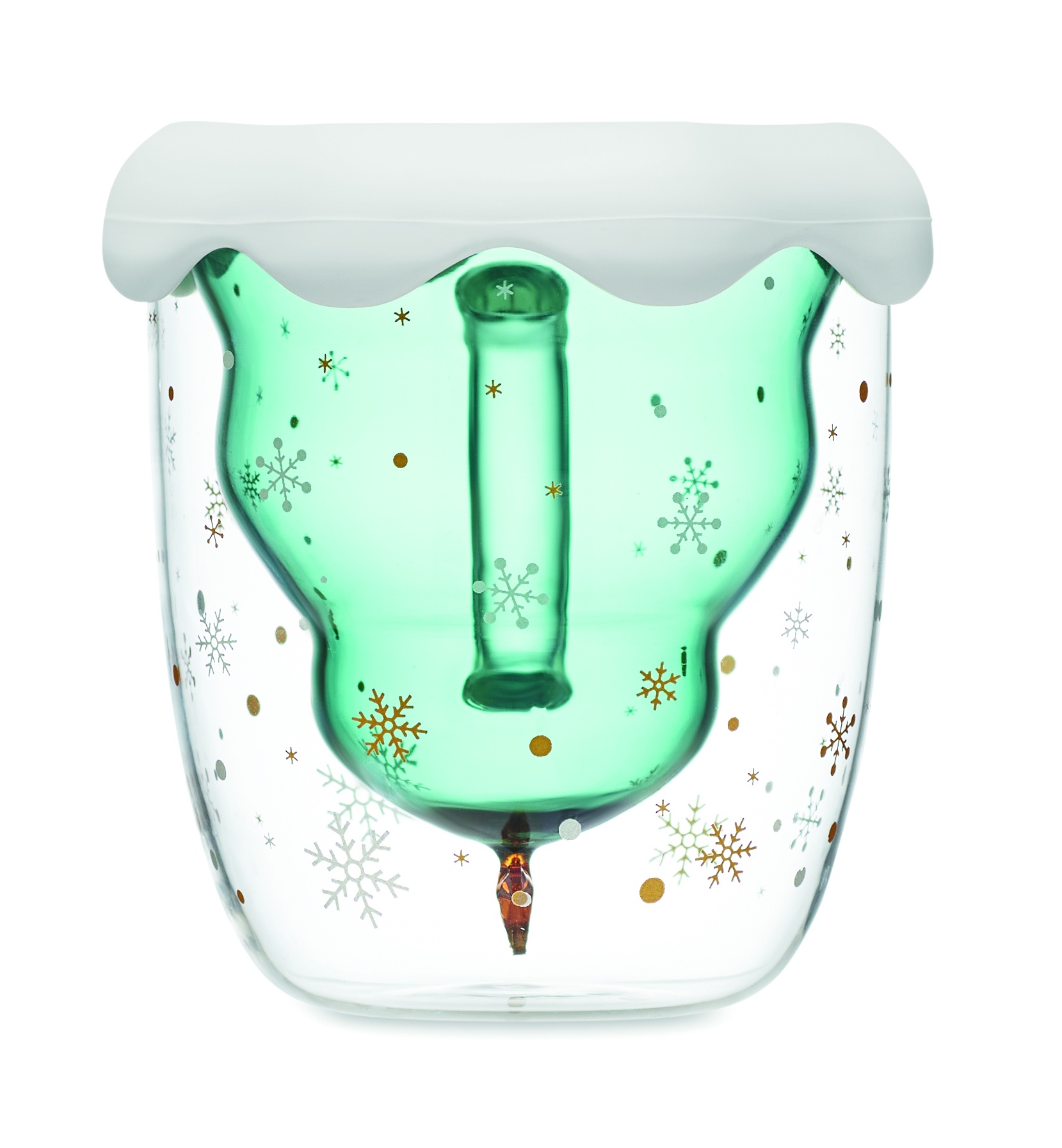 Hooajalise disainiga kaheseinaline boorsilikaatkruus silikoonkaane ja alusega. Mahutavus: 250 ml.