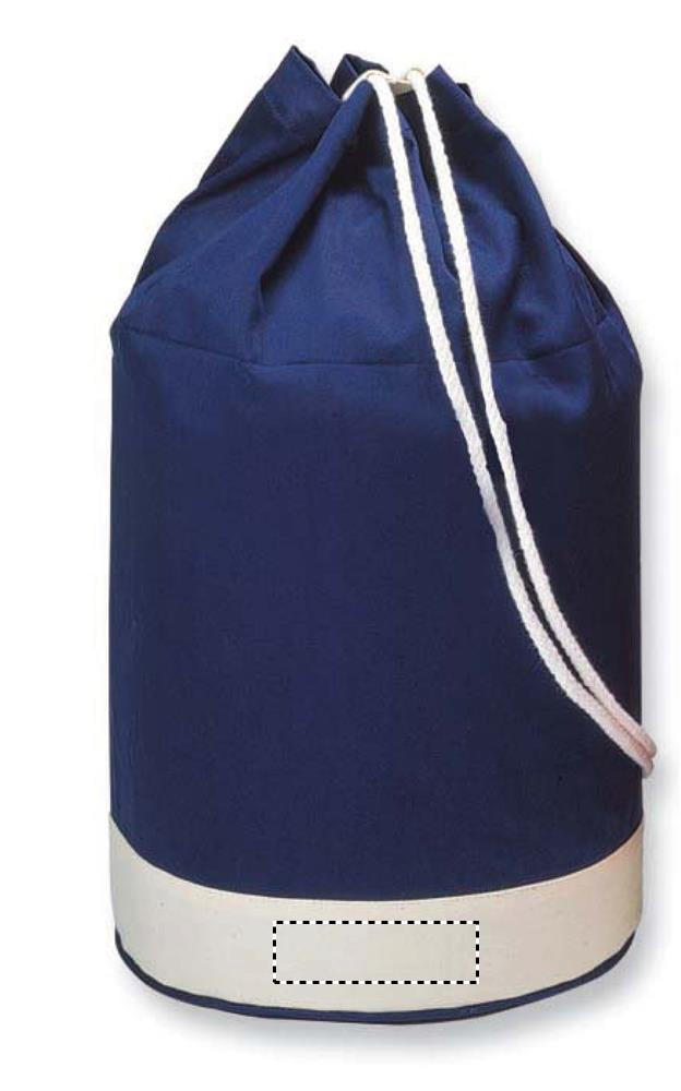 Kahevärviline puuvillane tumesinine valge triibuga kott. 200gr/m² puuvillane toimne.