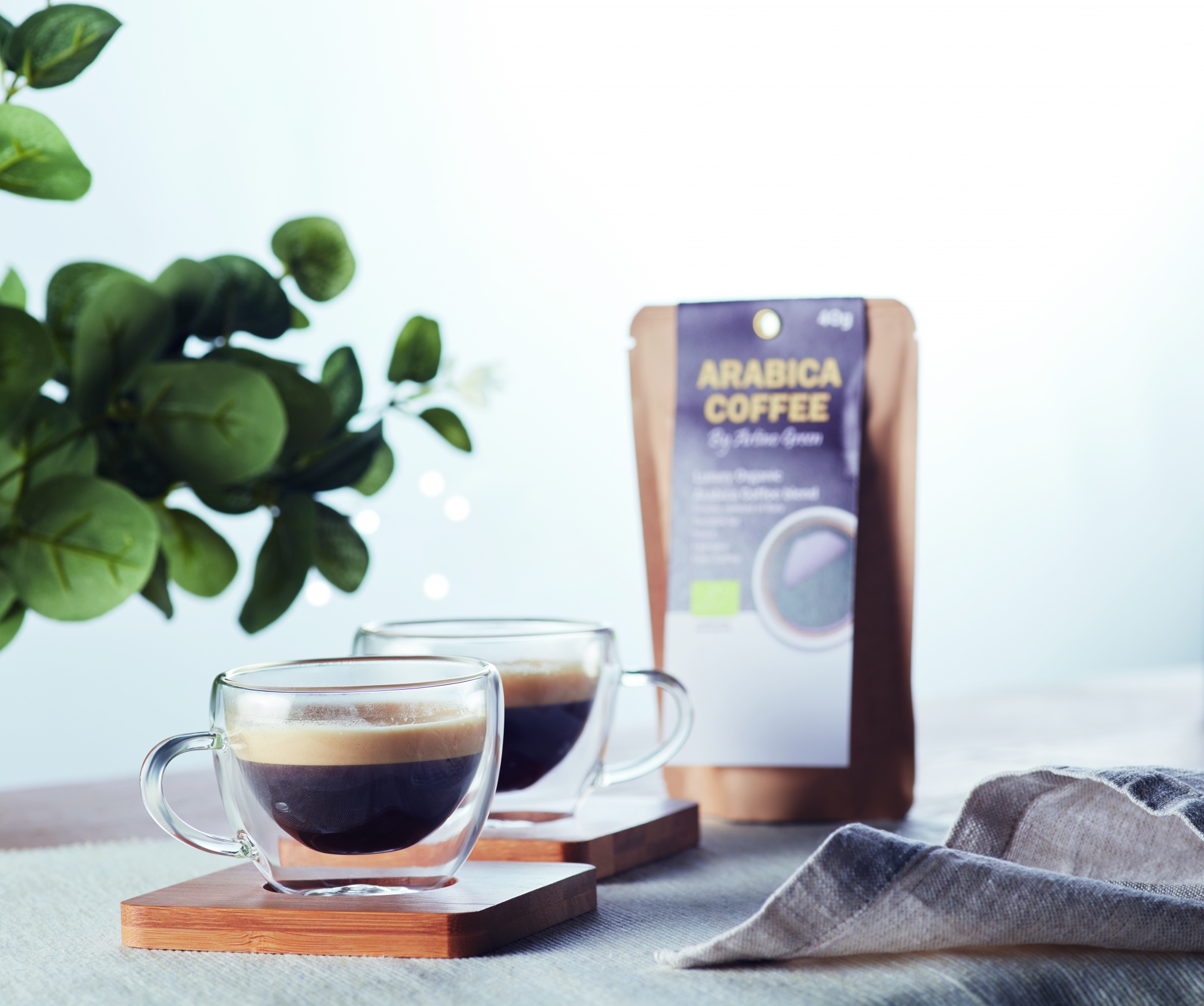 Komplektis 2 kahekordse seinaga espressoklaasi bambusest alustassiga. Esitatakse jõupaberikarbis. Mahutavus 60 ml. Bambus on looduslik toode, ühe eseme värvis ja suuruses võib esineda väikesi erinevusi, mis võivad mõjutada lõppviimistlust.