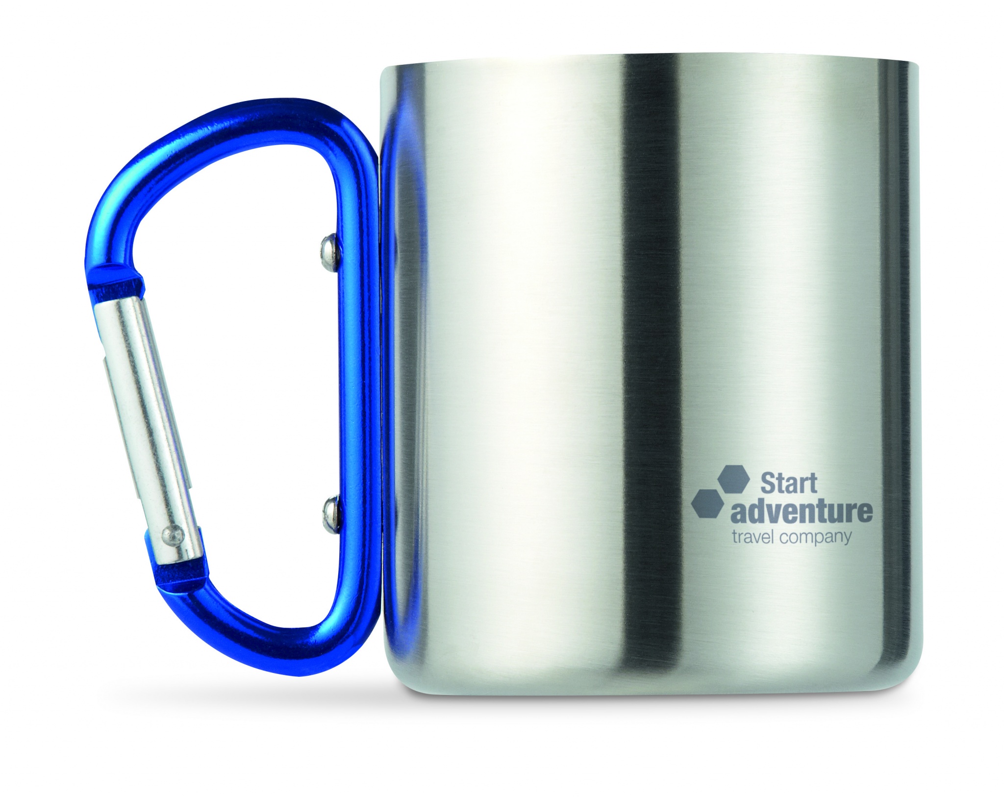 Logo trade reklaamtoote pilt: Metallist kruus ja karabiiniga käepide