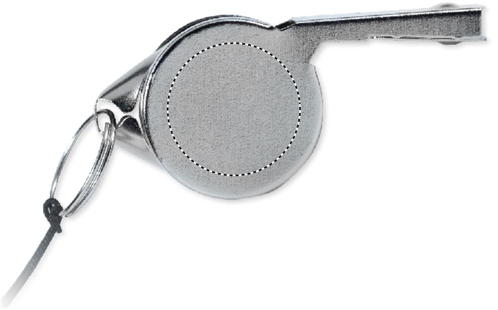 Turvapandlaga kaelapaela külge kinnitatud metallist vile.