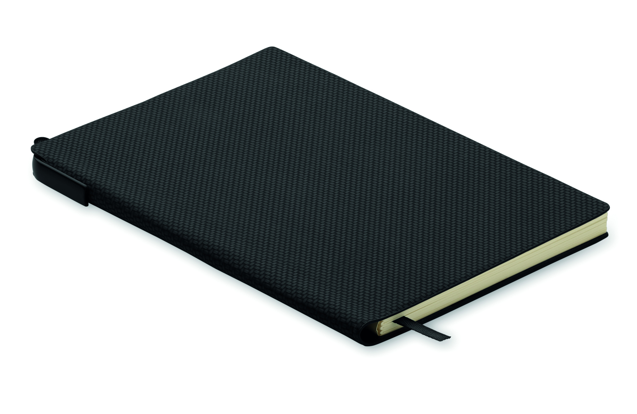Struktureeritud PU-kaanega A5-formaadis märkmik koos ABS-i keerduva pastapliiatsiga. 160 joonega lehekülge taaskasutatud paber (80 lehte).