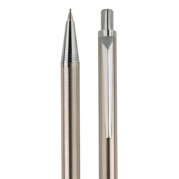 Luksuslik pastapliiatsi ja mikropliiatsi Pierre Cardin hõbedane komplekt, lihtsa klambriga alumiiniumkorpus, peen graveering käepideme pinnal. Pastapliiats sisaldab kvaliteetset sinist täidist otsaga 1 mm, mikropliiatsit ja grafiiti 0,5 mm. Pakitud Pierre Cardini luksuslikku taskusse, kaasas autentsussertifikaat.