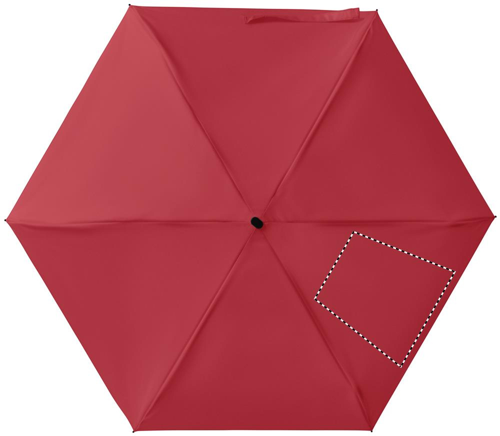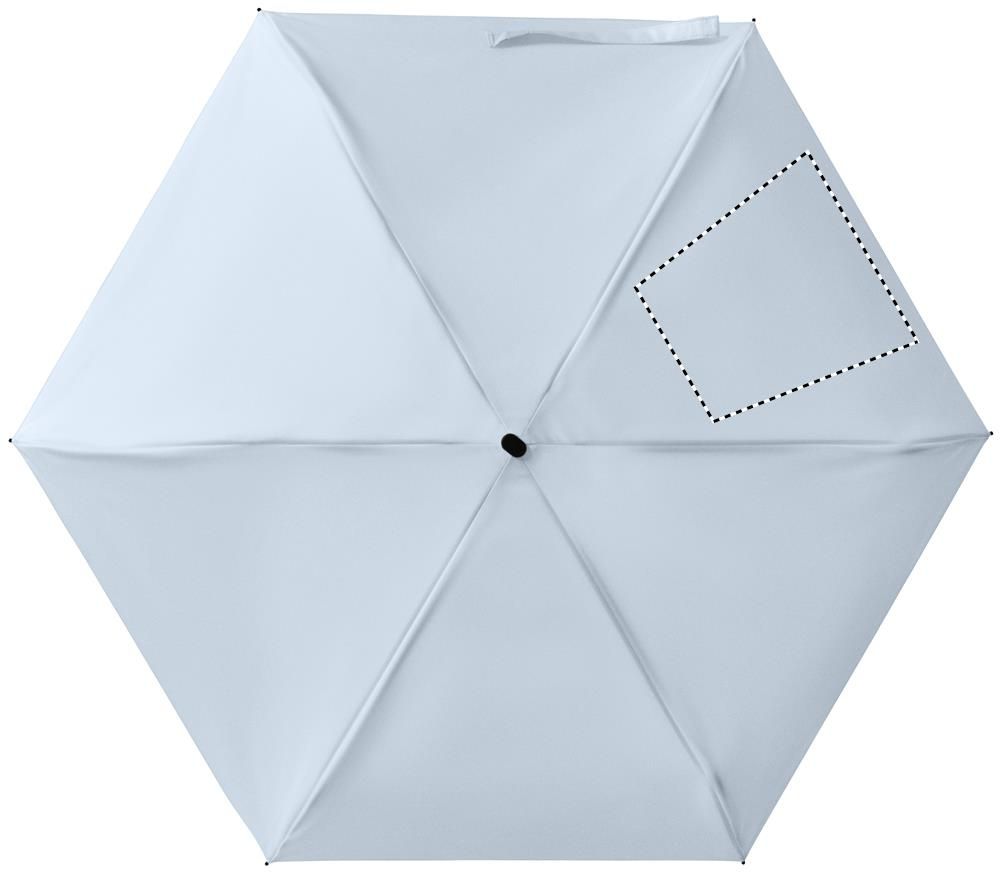 19-tolline viiest paneelist koosnev kokkupandav käsitsi avatav vihmavari, mis on valmistatud 190T pongee kangast, koos sobiva vutlariga. Sellel on metallist ja klaaskiust tuulekindel raam, must kummist käepide randmerihmaga, 17 cm pikkune kokkupanduna.