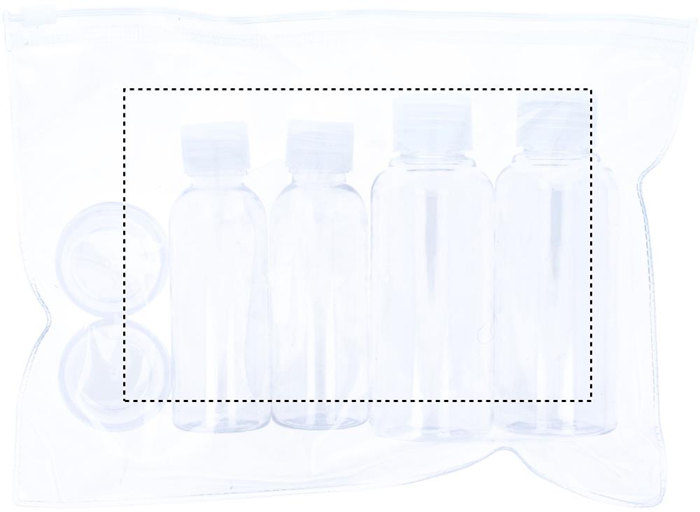 Lennuki reisikott, mis sisaldab 6 tühja plastpudelit. (100 ml, 50 ml ja 10 ml)