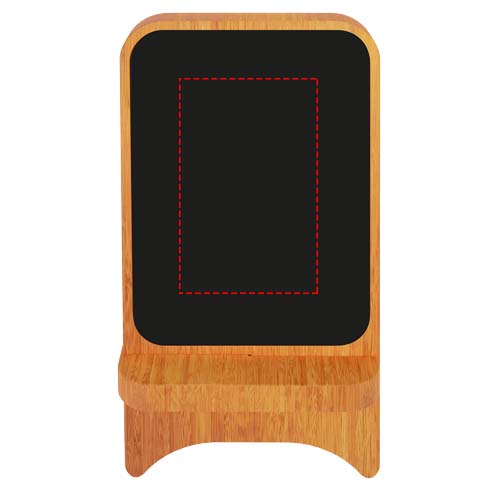 10 W kummist ja bambusest juhtmevaba laadija antibakteriaalse töötluse ja valgustava logoga. C-tüüpi sisend. Tarnitakse taaskasutatud jõupaberist valmistatud mustas kinkekarbis, sealhulgas taaskasutatud PET-plastkaabliga. Patent EUROPE EUIPO.